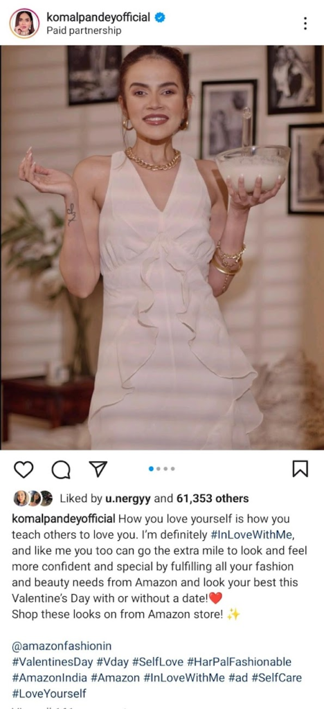 This is a wonderful example of their collaboration with a famous fashion influencer Komal Pandey, for branded content on Instagram as a part of the #HarPalFashionable campaign.