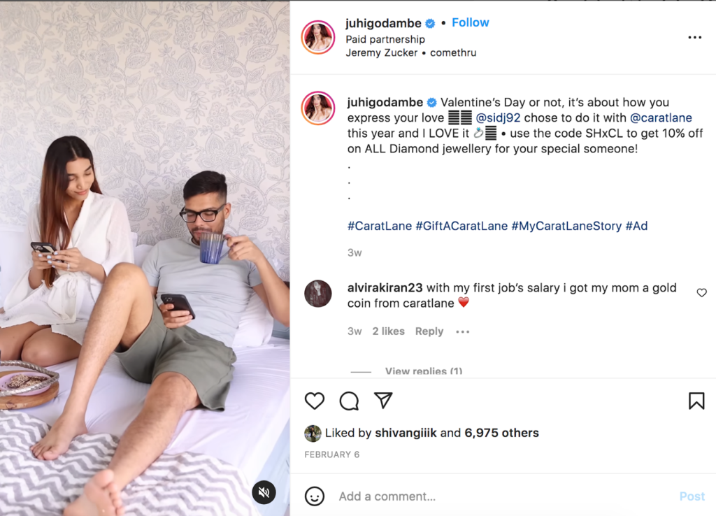 Here is an example of an eye-catching and heart-warming piece of branded content that CaratLane partnered with Juhi Dogambe and her husband.