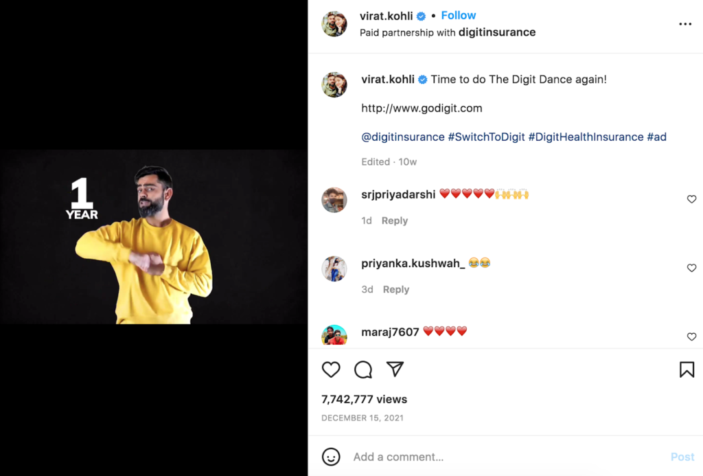 The startup has its own unique #DigitDance that it uses as a branded content piece in partnership with brand ambassadors and influencers such as Virat Kohli.