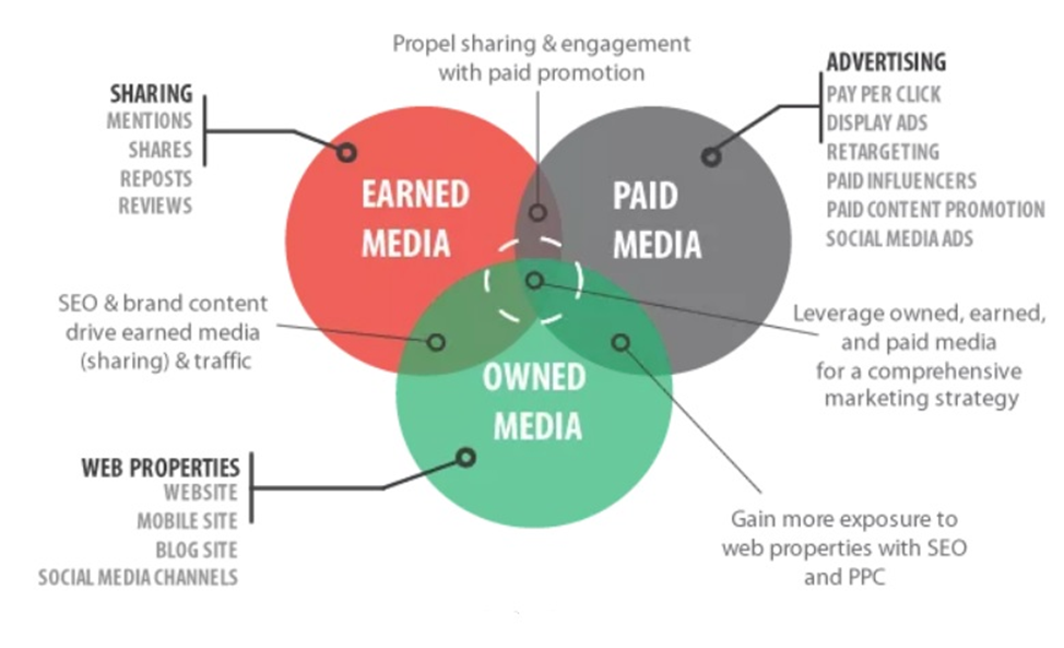 Ideally, content distribution can be carried out through three media, i.e., earned media, owned media, and paid media.