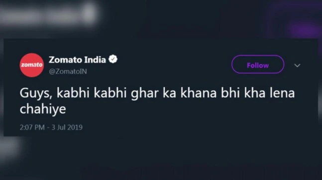 Zomato’s hilarious tweet, “Guys, kabhi kabhi ghar ka khana bhi kha lena chahiye,” became viral in July 2019, with over 18,000 likes. It became such a hit that other brands retweeted the post with statements of their own!