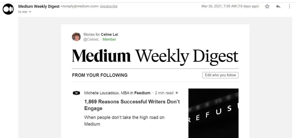Medium is an excellent resource for finding new and interesting content on a regular basis. It’s also a simple email marketing campaign idea. Thanks to a profusion of articles produced by well-known personalities and publications, combing through the content when you don’t have enough time to explore may become an issue.