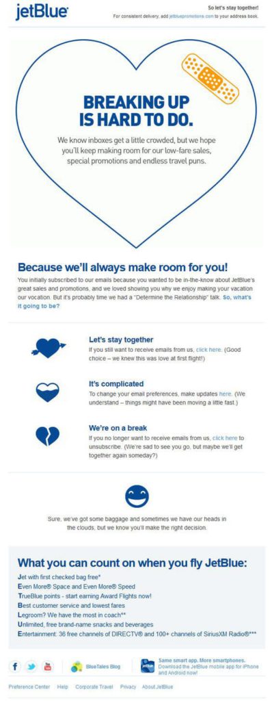 JetBlue is largely considered as one of the top email marketers in the industry, and for good reason. The company understands that no matter how hard a business tries to prevent it, subscribers may always perceive its emails as blatant marketing attempts. This is why the airline remains honest with its customers in every sense of the word.
