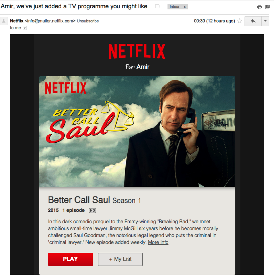 When Netflix informs you about shows you might have missed, their way of caring is always appreciated. Their material is updated regularly, and they make sure that everyone on their email list is informed. Those emails won’t be too often to appear spammy, and they won’t be too long to appear promotional.