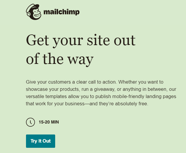 Next on the list of email marketing strategy examples is Mailchimp. Mailchimp is the industry leader in email marketing, and it serves as an example for all campaign software. This email urges users to try out Mailchimp’s templates for the many benefits it offers. It highlights the quickness of the process by mentioning the duration of 15-20 minutes, followed by a simple CTA.