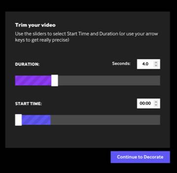 - After selecting a video of your choice, the following page will allow you to edit the video by adding the start time and the duration of the GIF. A GIF usually is less than 10 seconds. Remember never to have an abrupt start or an ending to your GIF. The transition must be smooth.