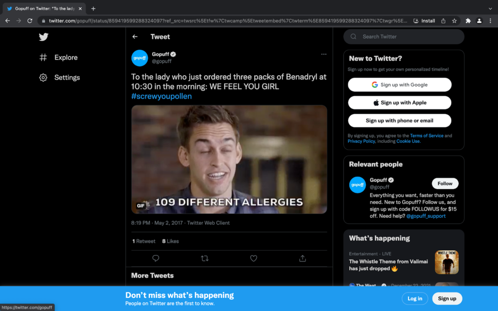 This was a witty move by Go Puff. While they are calling out on the weirdness of their customers, the commercial plays high on the relatability factor.