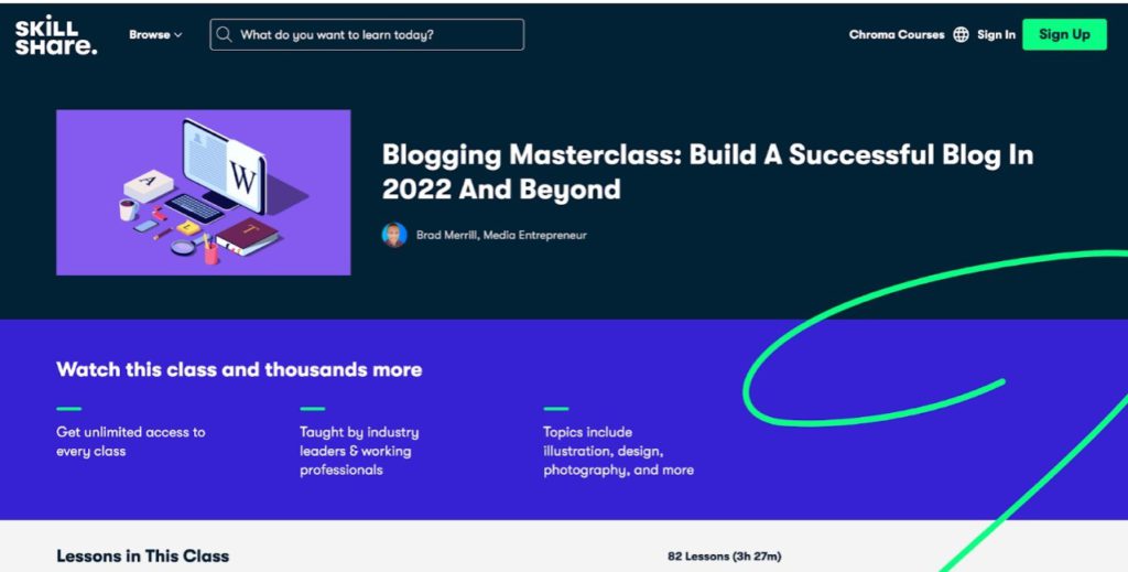Click here to start your 7-day free trial of Skillshare and enroll yourself in this premium free online course for blogging.