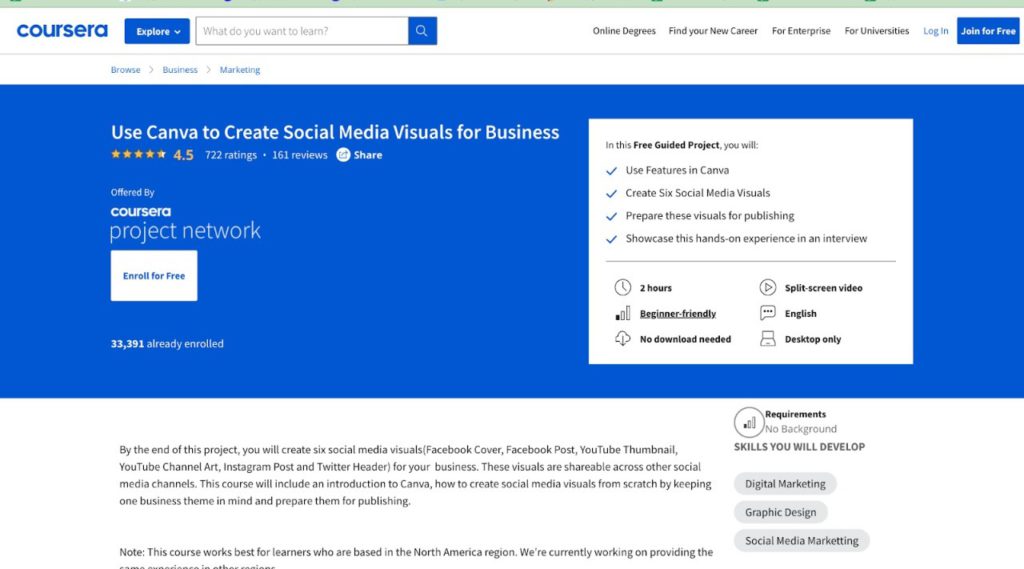 The easiest way to learn graphic design is via this course on Coursera. You will be introduced to Canva, taught how to create your account, and given hands-on experience creating various social media visuals. Sounds interesting? Sign up for this course here.