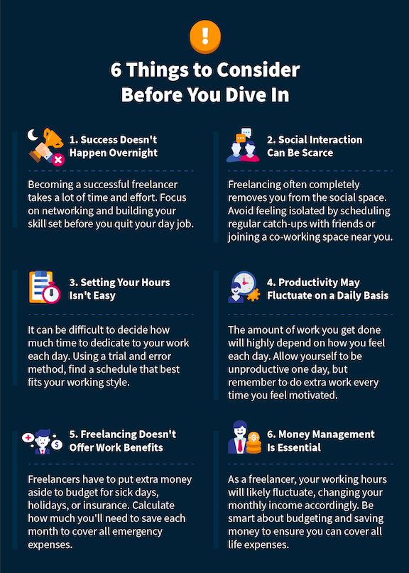 There is a probability that you might not be able to earn impressive amounts from the very first month of freelancing. But with the gradual increase in the amount of work, your payments will shoot up. This makes it important to be aware of the freelancing pros and cons. If you think you are not getting enough freelancing work, then it may not yet be time for you to start a full-time freelance career.