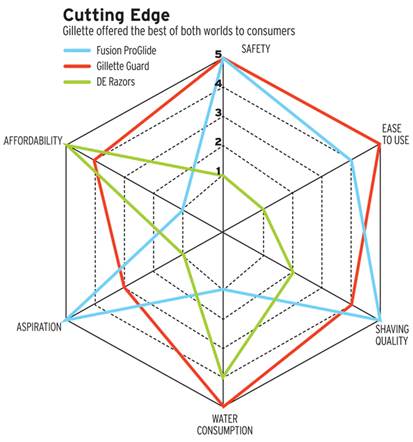 However, instead of lowering performance, as many other global brands did in the past, Gillette decided to keep the valued customer at the core of its marketing strategy and geared up its R&D team to introduce an innovative value proposition for the middle-class customer of India.