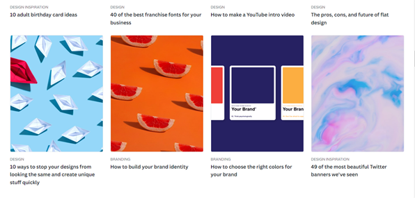 Canva curates content on its design blog every day, with several practical tips and how-to guides. All the content is organized into several categories, such as design, marketing, branding, and more.