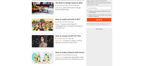 Inclined towards the advertising and branding fields, Creative Bloq provides an insightful take on several topics. With a collection of sensational logo designs and advertisements, it is filled with how-to guides and practical tips. It is packed with highbrow writing about the design industry. If you are a freelance graphic designer, you will find a wide range of topics related to fonts, logos, and tech to help you create a design that hits the brief!