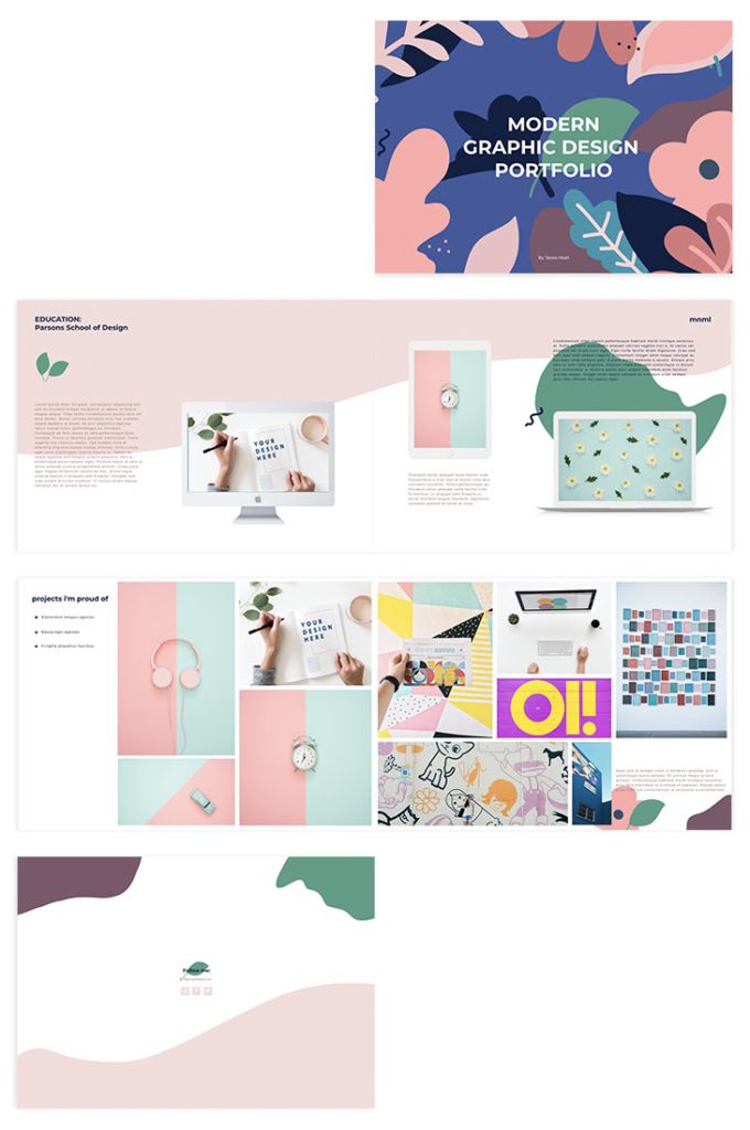 In your graphic design portfolio, start by including projects that represent your best work. It’s important to emphasize the projects you have created, instead of just listing the software programs you know how to use or the equipment that you have access to. Furthermore, you can also use pre-made templates to create a graphic design portfolio.