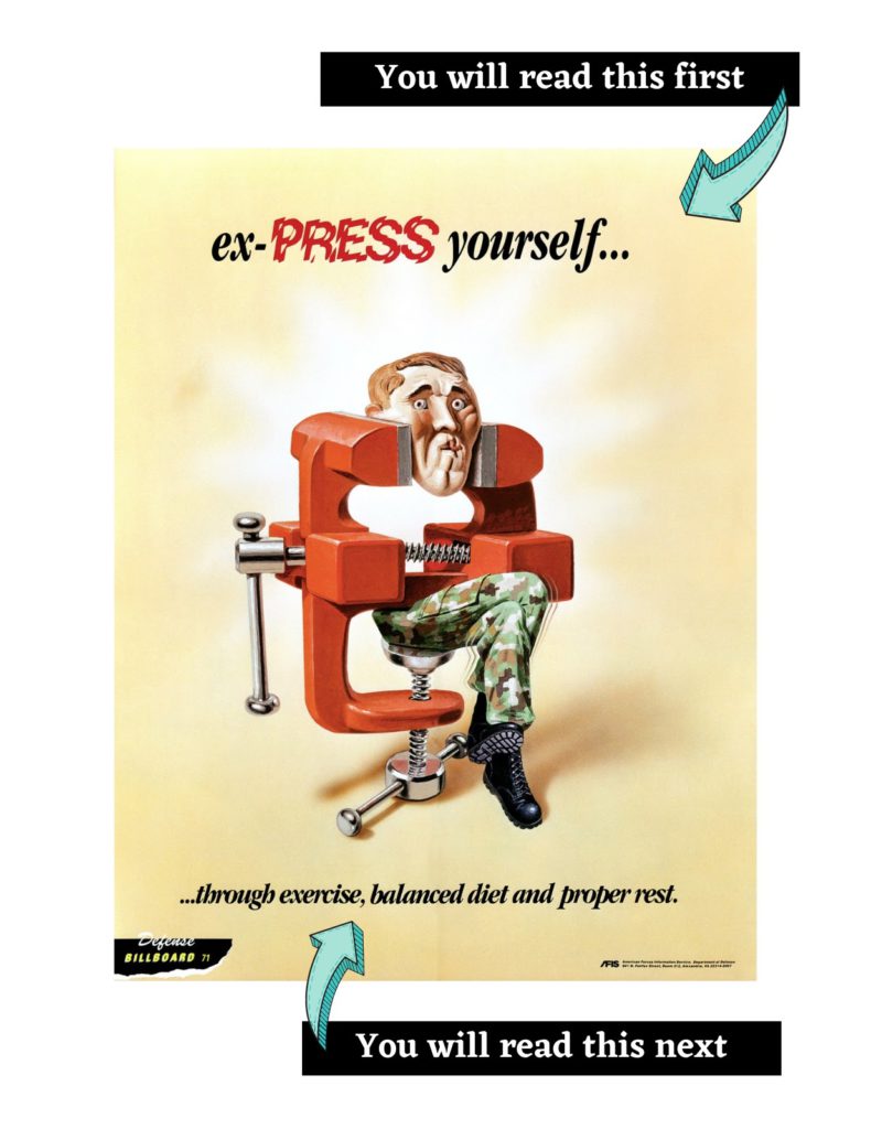 As per general graphic design rules, readers mostly follow the “F” eye movement pattern for graphics that involve text. Reading in other directions is simply uncomfortable. Hence, when following graphic design rules, it’s critical for you to line up your content accordingly.