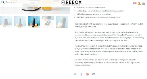 What’s more appealing than beautiful and sophisticated packaging? A well-written product copy. And TESCO has nailed the process. Whether it is cheese, soap, sausages, TESCO makes sure that their copy is packed with good humor, and their messages are powerful enough to last in your memory, a really long time after you’ve moved on from their webpage. Their sentences are extremely short, sometimes they just use phrases. But the message that they are conveying is powerful and precise. It is also an appropriate style for TESCO owing to the audience it caters to. Not all brands can cut down on their sentences as the text may come across as unclear.