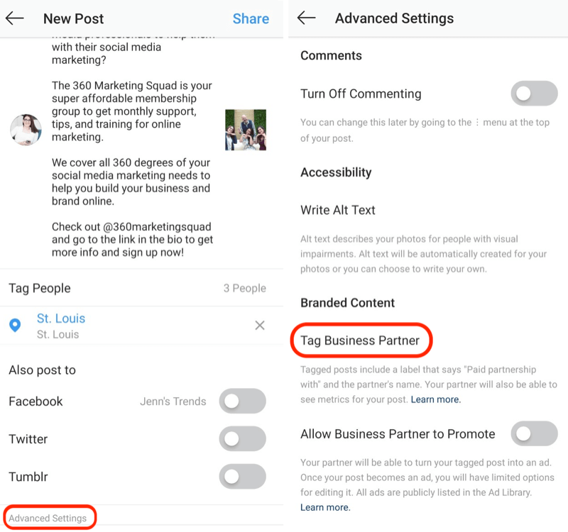 Instagram work accounts allow you to add partners that can post on your behalf. This feature adds an extra level of authenticity to your content.