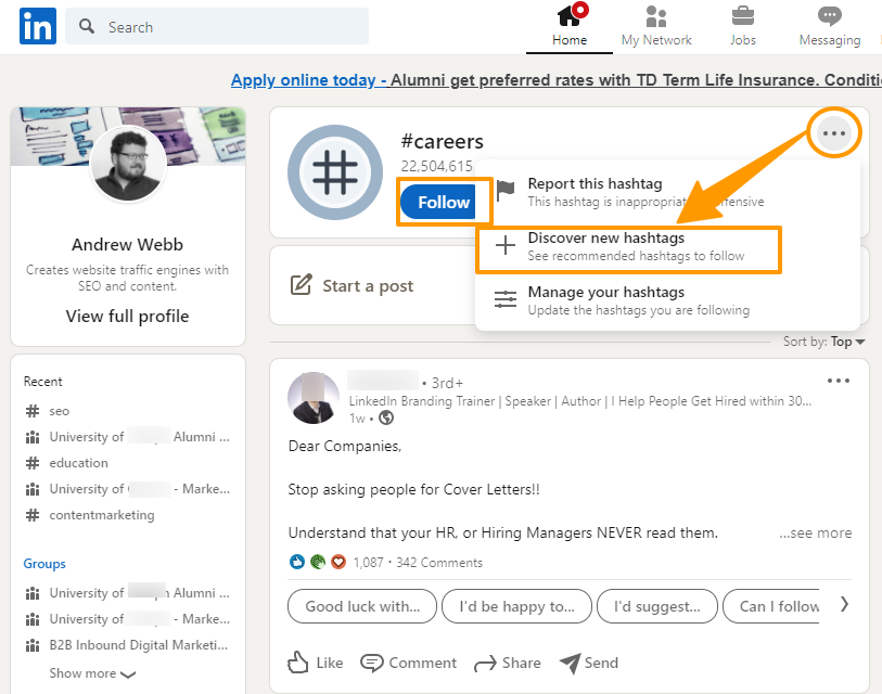The following are some of the ways how you can use hashtags on LinkedIn: