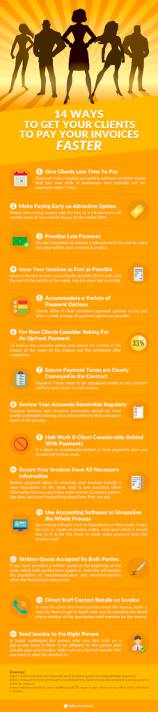 - Send the invoice to the client immediately after completing the work. The quicker you send it, the sooner they pay you.
