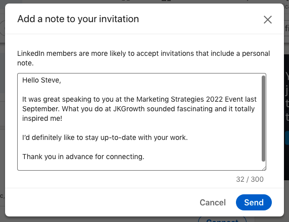 Now, here’s one of the best LinkedIn marketing tips for you: whether you are connecting with freelancers or potential clients, always send a personalized note with your connection request, as it will speed up your chances of getting the request accepted.