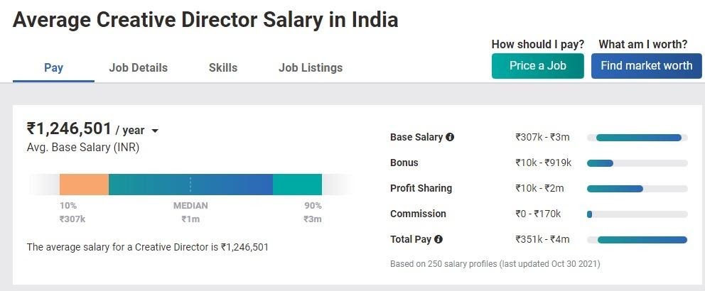 To be an amazing advertising copywriter, one has to grow with experience. He works across a wide range of brands with an agency’s advertising contract. So, he gets a lot of opportunities to write creatively across a wide range of formats. According to Payscale, a senior copywriter earns around INR 6,00,000 per annum on average in India, while the salary of a creative director can go upwards of INR 12,00,000 per annum.