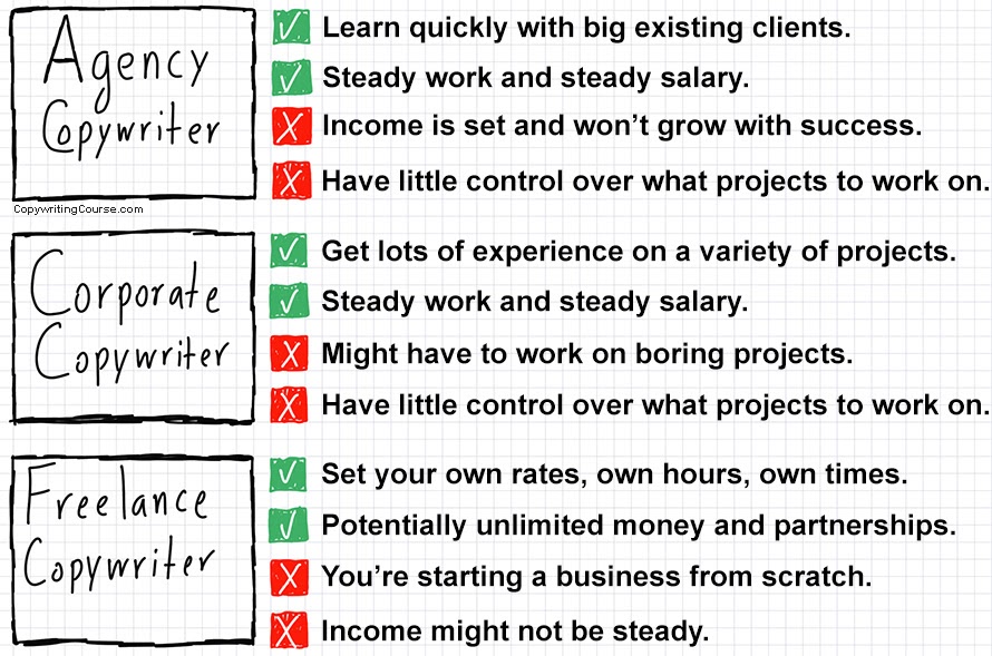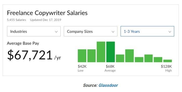 The advantage of being an in-house copywriter is that you gain a high level of expertise in one industry. That helps in creating a high-quality copy. Naturally, the bigger and more reputed the company, the better it will pay. According to Glassdoor, the average base pay for copywriters varies between $28000 and $46000.