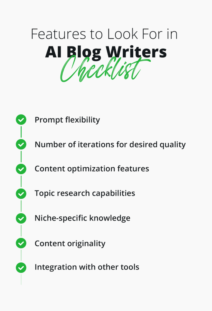 You are integrating AI to simplify the process of content development. Therefore, you should select a tool that can be easily integrated into your existing environment. Furthermore, it should be in line with your employee’s skillset to ensure there is minimal or no learning period. Different tools have different levels of expertise and technical requirements. Therefore, before you choose the best AI content writer, look at the technical knowledge and tech-savviness of your employees.