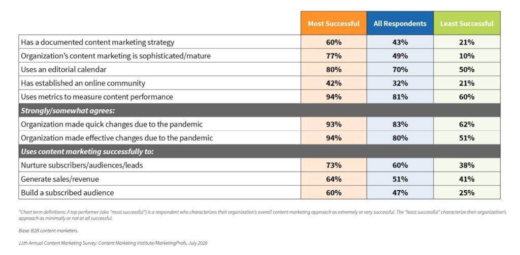Companies and small businesses that have strong content marketing strategies are said to have better ROI with regard to their content investments. An overall content marketing strategy and periodical reviews and audits help in understanding which type of content works and which does not. In fact, the most successful B2B companies have a documented content marketing strategy.