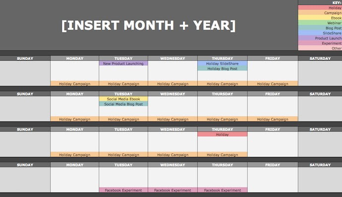 Hubspot’s editorial calendar template is a DIY that helps outline your strategy.