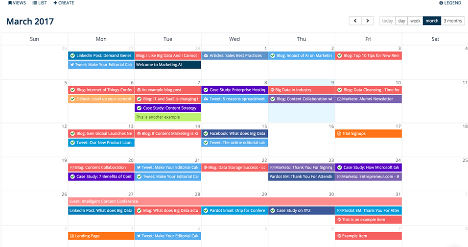 - The best editorial calendar templates contain a business’ content marketing objectives, possible content topics, upcoming content strategies, ROI measurement analytics, and content optimization plans.