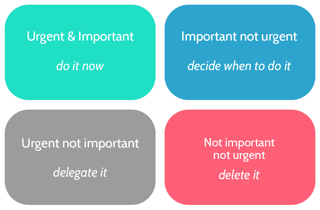 Organizing is more than just having a clean workspace. It is about understanding priorities. Keep a calendar, know your deadlines, and take actions based on this priorities. Prioritize the tasks you have in hand so that they are done promptly within the allotted time. Try the below quadrant to organize your work and delivering it on time.