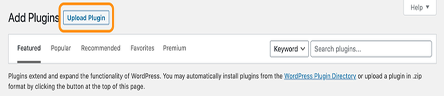 - Click on “Upload Plugin,” located at the top of the page.