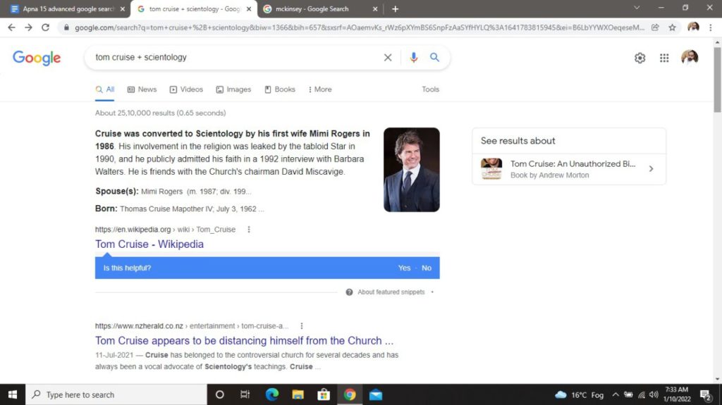 For example, if you search only Tom Cruise, the search results will be quite verified; however, if you are looking for information related to Scientology, then type “Tom Cruise + Scientology” to get exactly what you want.