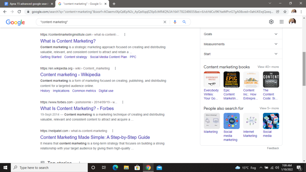 Let’s understand this with an example. Let’s assume you’re looking for content marketing information on Google. Rather than merely typing content marketing into the Google search box, you should search for the specific keyword. To do this, simply double-quote the search query.