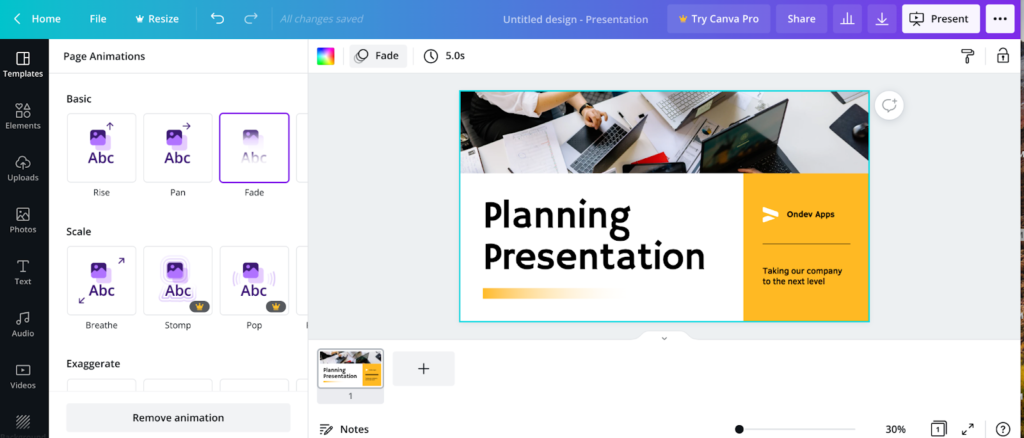 Another significant advantage of Canva is that you don’t need additional software if you wish to record yourself or your screen. Canva is free to use, but the Pro version offers more features.
