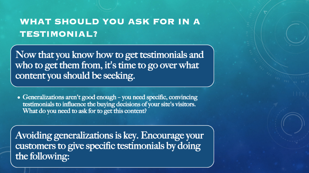 2. Align the testimonial with the checklist mentioned earlier in this guide