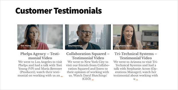 2. YouTube testimonials