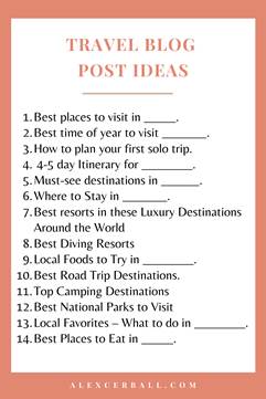 The first thing you need to start writing a travel blog is to make a list of topics you are interested in writing about. It’s okay if you can’t narrow down the list yet. Sometimes, broad topics can help you explore your options further. You can choose anything from sustainable travel to adventure destinations. No matter what theme you decide on, ensure you post high-quality photographs. Mentioned in the image above are a few travel blog ideas you can borrow.