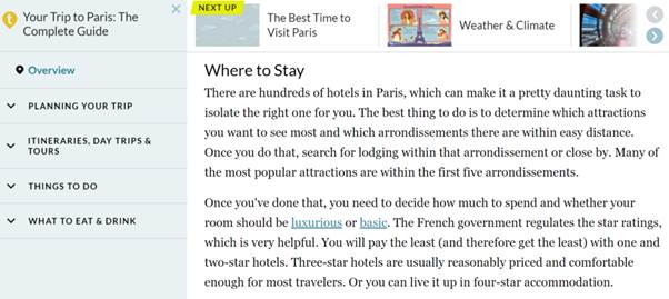 While sharing your travel experience, it’s always better to be specific. Be clear about where and which places you visited, the specialties found there, and how you felt staying there. Some things to look for: neighborhoods visited, whom you traveled with, and hotels you stayed at.