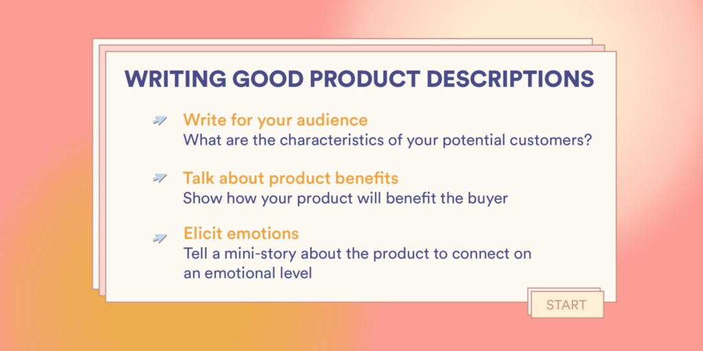 Today’s customers want to evaluate their options before making a purchase. One of the leading marketing surveyors, Salsify, reported that 87% of online customers said good product descriptions influence their purchasing decisions.