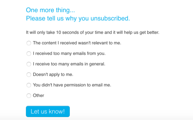 - Opting out of subscription isn’t uncommon. Still, you can get some learnings from it. Take it as a chance to throw out one last attempt to retain them. For example, during the opt-out process, present a short survey. This will help you realize just what you were doing wrong that led the subscriber to leave.