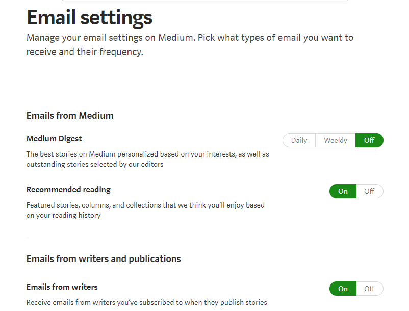 Knowing the reason behind their unsubscription is of great value. It’ll help you know exactly how to reach out to them in the future. Take a look at this opt-out process at Medium, giving readers options to set the subscription to their liking: