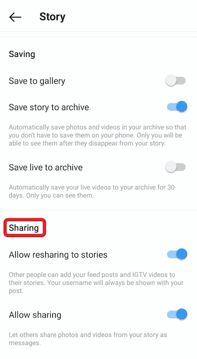 While talking about how to increase Instagram organic reach, one cannot forget this feature. Remember to turn on this feature so that your followers can re-share either on their own Instagram feed or as a direct message. Some brands often choose not to use this feature. This is driven by the need to control the content, which directly contradicts the whole idea of organic reach. If you don’t let others re-share your content, how will you increase organic reach on Instagram?
