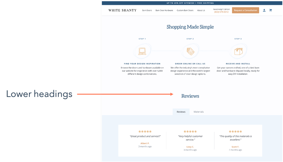 You should also try to include other words in your lower headings like features, benefits, reviews, and specifications.