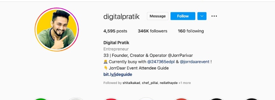 Digital Pratik @digitalpratik is a one of India’s top Instagram influencers with a whopping 187k followers! As a virtual digital consultant, he specializes in helping businesses learn how to build better brands. Through his Instagram posts, he aims to educate and help his audience build their marketing plans.