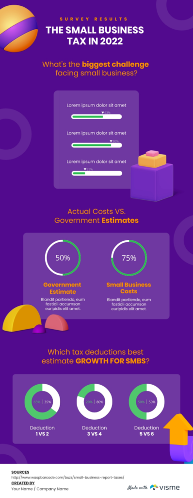 Use your company’s colors, fonts, and logo to personalize the template. Create an infographic that will wow your bosses by adding additional blocks and experimenting with different graphic components.