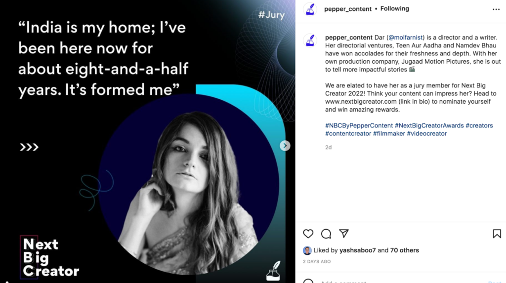 - Feature user-generated content and feedback on stories. Received beautiful feedback? Put it out there! Or a happy client’s picture wearing an outfit you stitched? Voila! Also, tag your users so that they can repost too.