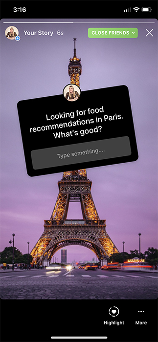 Rather than asking what your followers think, the questions sticker allows them to ask you questions. Consider it the Instagram equivalent of a Q&A session.