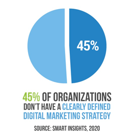 - According to Smart Insights, 2020, 45% of organizations don’t have a clearly defined digital marketing strategy. These statistics show the need to deploy digital marketing to expand your business and boost your digital presence.
