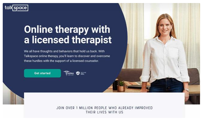 Talkspace has a good headline and a sub-headline that elaborates the service. Take a look: